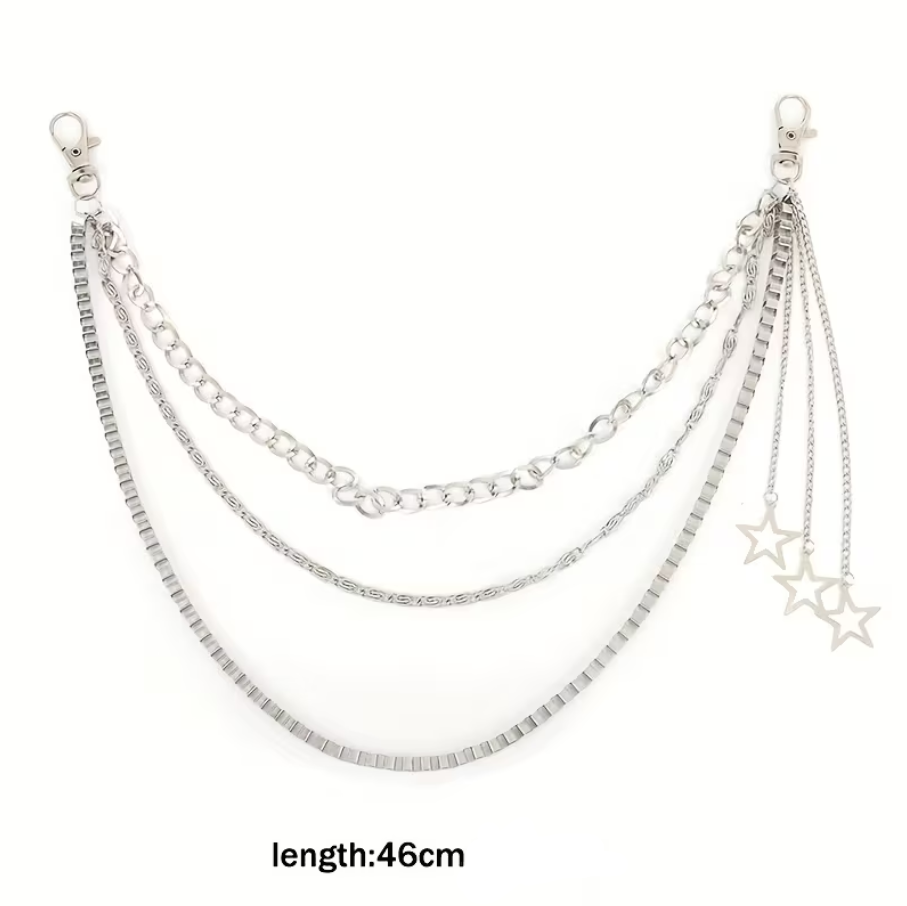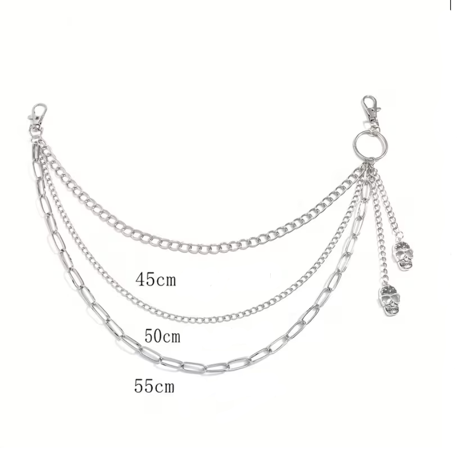 1 vnt sidabrinės spalvos ilga grandinė – kelnių puošmena/ raktų pakabukas